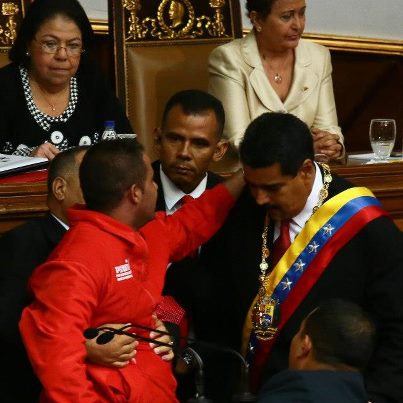 Inatteso il fuori programma di un uomo che durante il discorso di giuramento di Nicolas Maduro è riuscito a raggiungere il presidente venezuelano nell’Assemblea nazionale strappandogli di mano il microfono.