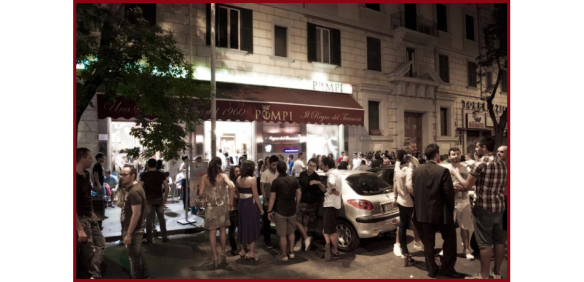 Ma ragazzi, seriamente. Di cosa stiamo VERAMENTE parlando? Stiamo parlando della combinazione infausta di tutti gli elementi che rendono l’aria irrespirabile sul pianeta Italia, e in particolar modo a Roma. E badate bene: la criminalità, organizzata o meno, non c’entra niente. Stiamo parlando di illegalità, arroganza, inciviltà. Perché il noto Pompi di Via Albalonga ha prosperato per 54 anni grazie all’impossibilità, in questo cazzo di Paese (e scusate se dico Paese) di far rispettare qualsiasi regola. Da anni, anzi decenni, davanti a quello storico, preziosissimo esercizio, fino a notte fonda le machcine parcheggiano in doppia e tripla fila, e le persone schiamazzano per la strada, impedendo il normale traffico, e anche una vita tranquilla a quei cattivoni dei residenti, che magari vorrebbero guardarsi un film in santa pace, o anche solo leggere un libro sul divano, senza clacson e sgommate a tutte le ore. E Mr. Pompi è così fiero del casino che provoca il suo tiramisù, che ne fa oggetto di marketing: infatti le foto allegate sono state scaricate dal sito ufficiale di Pompi.
