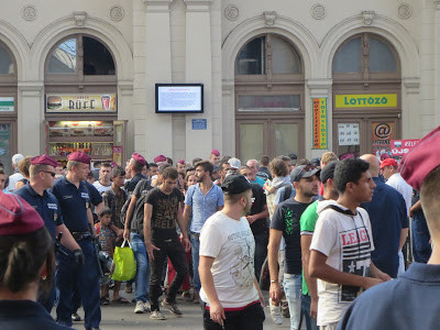 Per accedere in stazione mi sono sottoposto ai controlli speciali scattati dopo la decisione di chiudere la stazione al traffico ferroviario e ai movimenti dei passeggeri. Per alcune ore, sono rimasto bloccato dentro la stazione insieme ai profughi e ai poliziotti e così ho potuto assistere allo svolgimento delle fasi più drammatiche dall’occupazione pacifica dei treni in partenza per l’Austria e la Germania all’evacuazione dei suddetti treni, al ritorno degli extracomunitari nel piazzale antistante la stazione (Baross ter) dove hanno continuato la protesta.