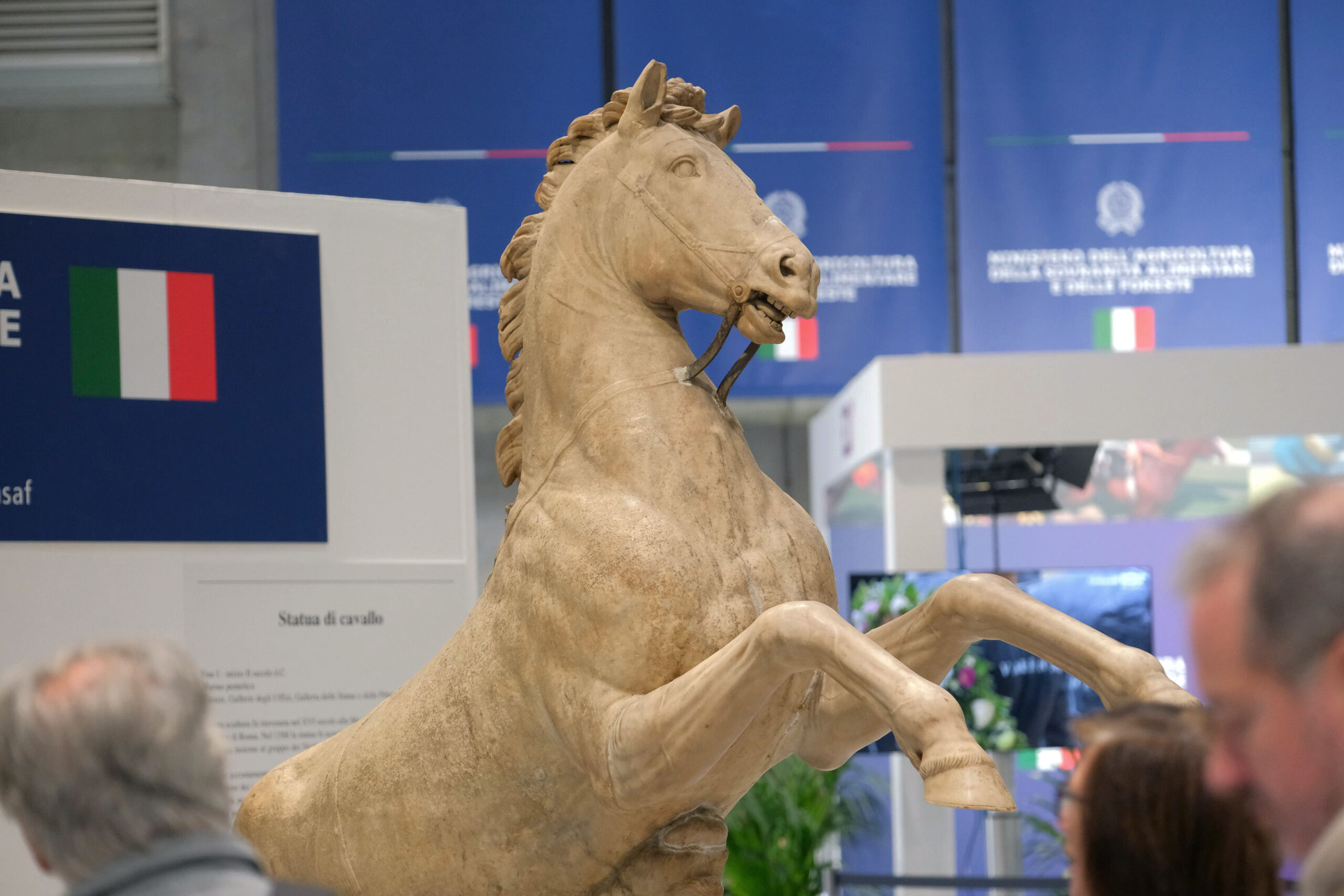 A svelare la statua in fiera il ministro dell’Agricoltura, della Sovranità alimentare e delle Foreste, Francesco Lollobrigida: «Abbiamo in fiera a Verona una straordinaria opera di 2.000 anni fa, proveniente dagli Uffizi e che è esposta con l’obiettivo di coniugare nel sistema-Italia quello che ci rende unici: cultura, tradizione, passione e risultati sportivi. Puntiamo al futuro, all’innovazione, alle nuove sfide, ma siamo anche legati a tradizioni millenarie», ha detto Lollobrigida.