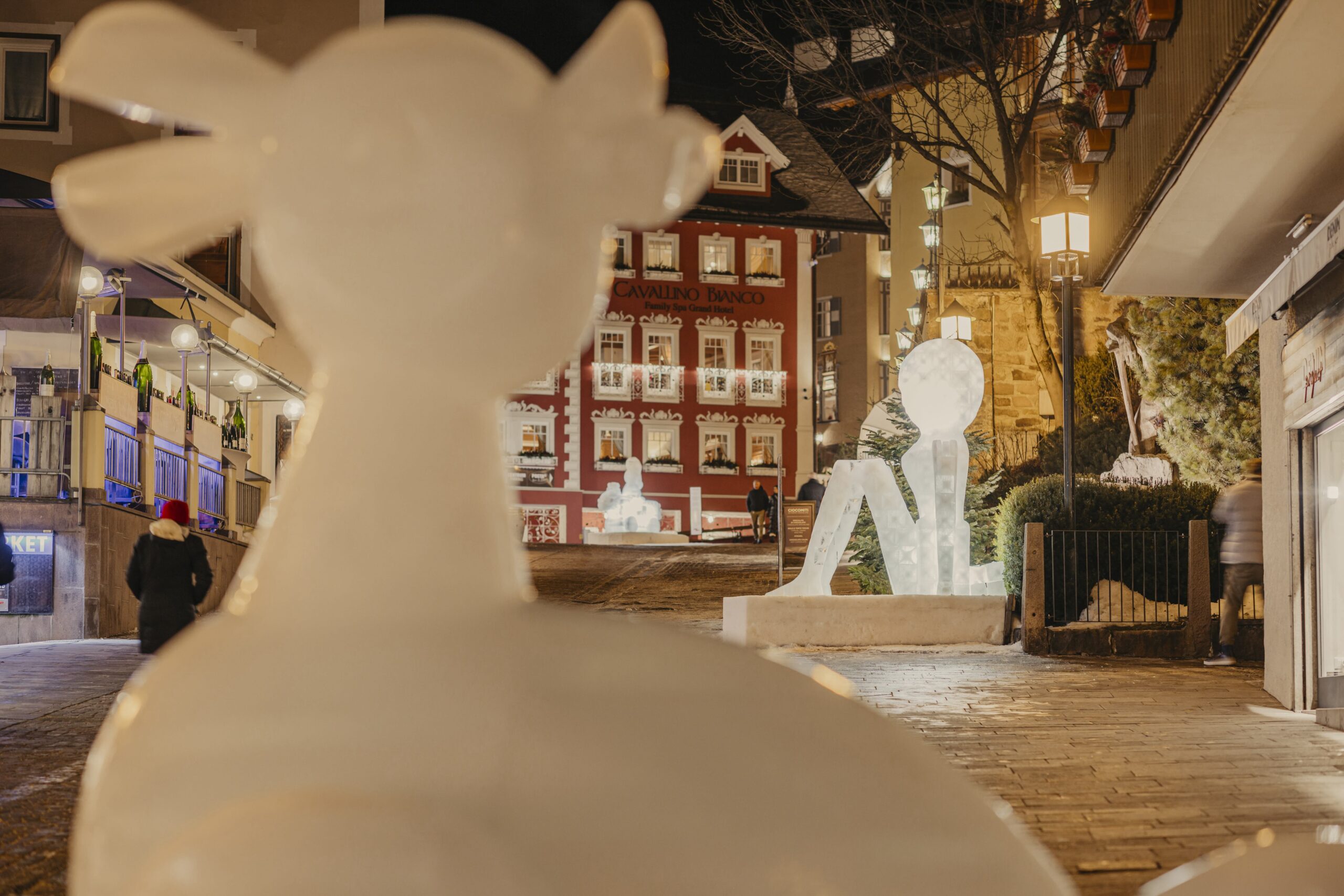 L’arte della scultura in Val Gardena si adegua alle stagioni. I maestri gardenesi, scultori conosciuti e apprezzati nel mondo, durante i mesi invernali non realizzano solo sculture tradizionali in legno ma si dedicano anche a iniziative particolari, come scolpire il ghiaccio.