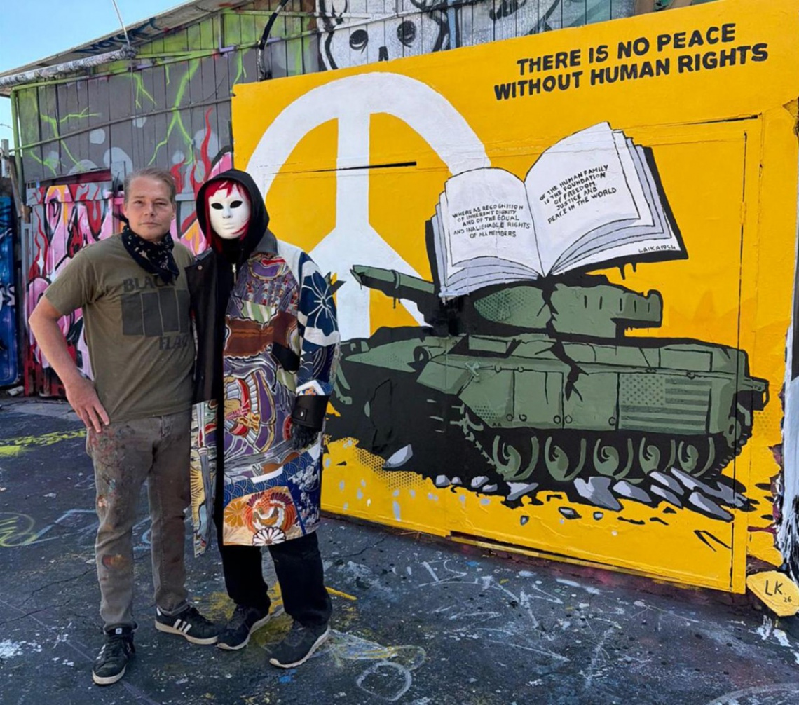 Durante la realizzazione dell’opera, Laika ha incontrato lo street artist americano Shepard Fairey (OBEY), una delle figure più influenti della street art contemporanea, anche lui impegnato in un nuovo murales a pochi passi da quello di Laika.