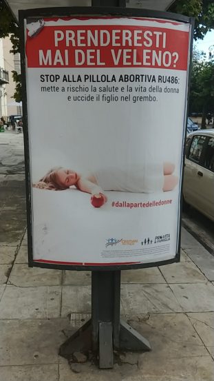 (Palermo, 16/12/2020) – Manifesti contro la pillola abortiva: si respira un clima da Santa Inquisizione in Italia....
