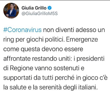 #Coronavirus non diventi adesso un ring per giochi politici. Emergenze come questa devono essere affrontate restando uniti:...