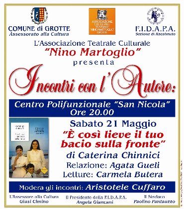 L’Associazione teatrale-culturale “Nino Martoglio”, con la Fidapa – Sezione di Racalmuto e il Comune di Grotte, sabato 21...